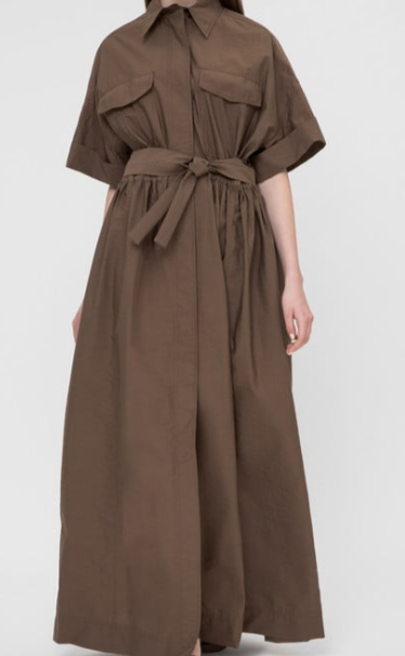 シンプルなデザインながら上品で落ち着いた印象を受けますね。また、ブラウン一色なのでどんなシチュエーションにも合わせやすく、小物でアレンジもできる万能なワンピースです。
