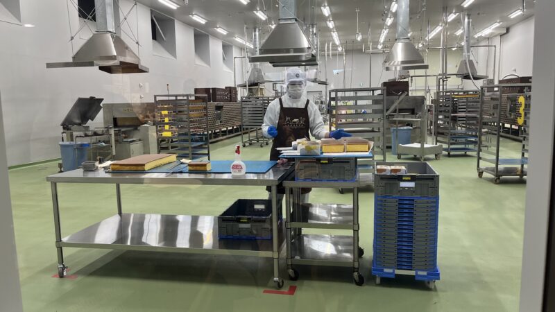 東京カステラパークは無料でカステラの製造ラインを見学することができます。