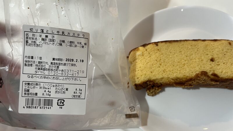 牛乳カステラの切り落としは、はちみつカステラよりも少しだけ甘さ控えめです。