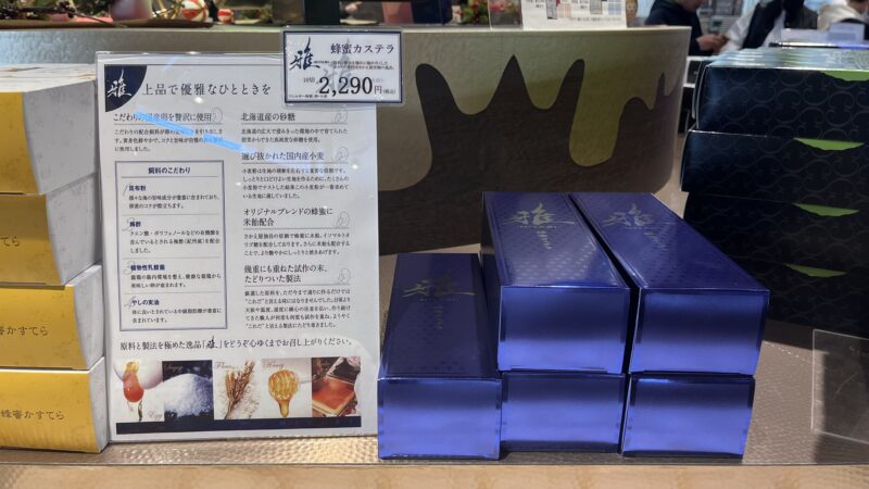 | 蜂蜜カステラ(雅) | 2,290円(10切) | 原料と製法を極めた逸品 |