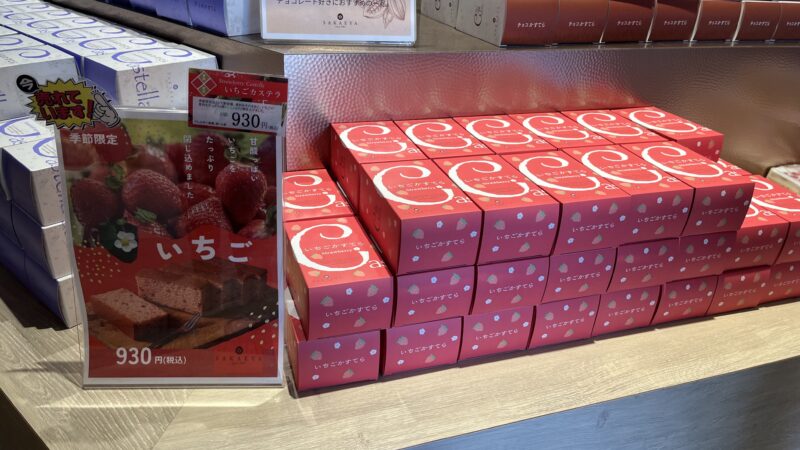 | いちごかすてら(季節限定) | 930円(5切) | いちご果肉をたっぷり使用 |
