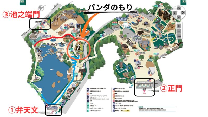 それなら、パンダを確実に見るにはどの門から入るのが近いか、並び方はどうなっているのか気になりますよね。